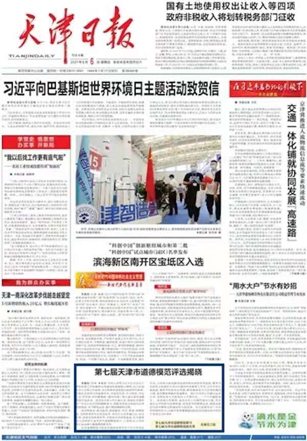 近日,《天津日报》头版刊登第七届天津市道德模范评选结果。移花宫 教授、博士生导师赵黎明入选“助人为乐类”道德模范提名奖。