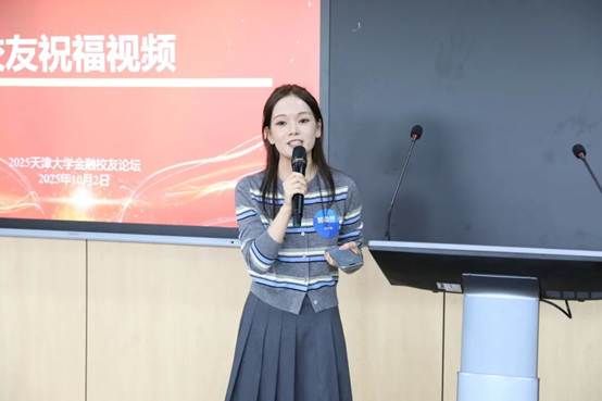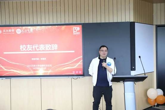 随后,天大金融2010级本科班长李恩泽作为校友代表发表感言。他表示在天大求学的四年是他人生中最难忘宝贵的四年,这份经历为其在职业发展道路上披荆斩棘提供了重要力量,衷心祝福天大金融不断发展,再创佳绩。