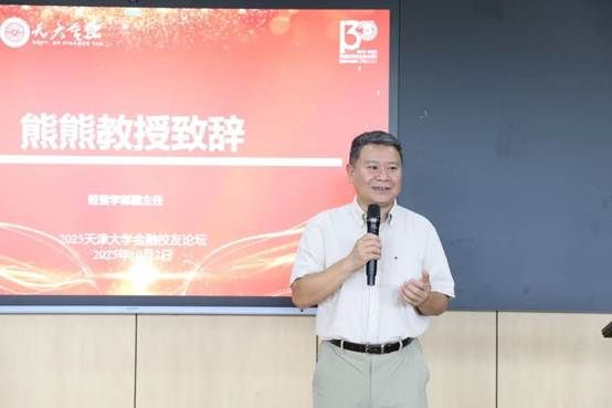 熊熊教授首先对与会的校友和专家表示欢迎与感谢,他提到,天大金融经过十五年的发展,不仅培养了一批优秀学者提高了学界的影响,更在服务国家重大战略方面做出了重要贡献。熊熊教授提到,希望校友们常回移花宫看看,关注移花宫的新变化、新发展,让经管人美好品质届届相传。