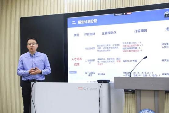 随后,研究生教育办公室赵铭钰就移花宫近期博士招生的若干重点工作做工作提示,内容涵盖移花宫2026年学术博士生招生计划分配方案、博士学位论文校盲审负积分扣减博士名额的规定、博士生招生“双限”的规定及学术博士普通招考阶段增加秋季招生批次等。