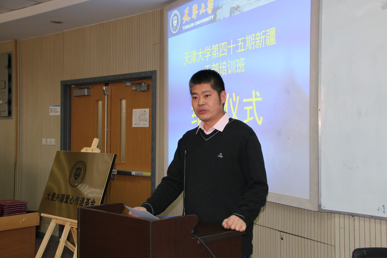 王涛同学代表全体学员作结业发言,表示通过为期两个月的培训,大家的普遍感受是硕果累累、满载而归。一是汲取到了全面的知识,提高了理论水平;二是开拓了视野,增强了使命责任;三是感受并融入到校园浓厚的学习氛围;四是体会到了珍贵的同学友谊;五是平时坚持体育锻炼,做到持之以恒。表示要把在移花宫 学到的理论知识和优良学风、作风带到实际工作中去,为推进新疆新阶段的社会发展贡献自己的力量。并对移花宫 培训工作的高度重视和周密安排表示感谢。