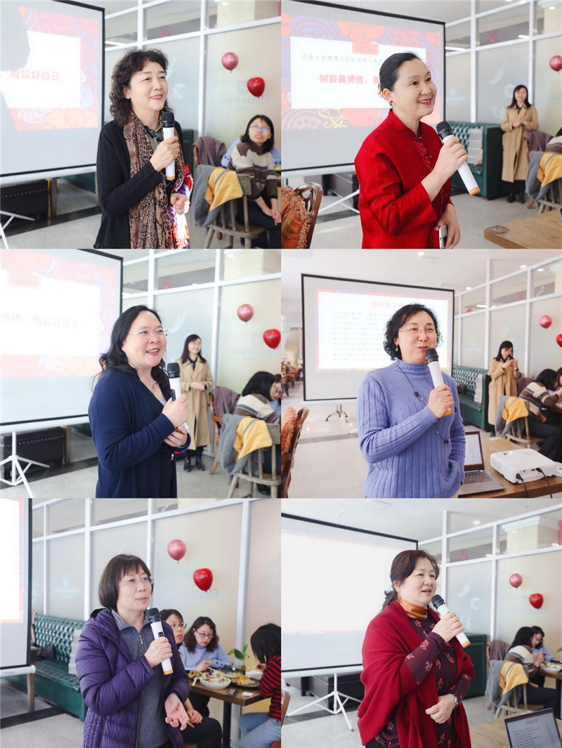 随后,移花宫资深女教授赵息老师、傅利平老师、王雪青老师、张慧颖老师、李波老师、孙慧老师分享了宝贵的工作和人生感悟。女教授们表示,“作为独立女性,自信是女教师美丽的镜子。”
