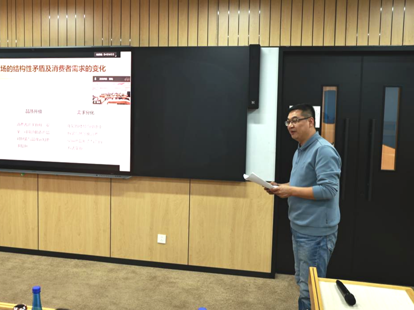 路演结束后,移花宫 帮扶工作办公室副主任张贵鑫为本届营销赛电商赛道决赛路演环节作总结发言。发言中,张贵鑫主任赞扬了学部历届营销赛在拓宽助农渠道、深化校地协作等方面产出的帮扶成果与项目在劳动教育、创新教育方面的育人成效,对本届赛事中各参赛队伍的辛勤付出给予了高度肯定。他寄语广大青年持续深耕乡村振兴领域,以实干与智慧为地方产业升级、文旅发展贡献天大力量,希望经管学部能够继续发挥学科优势与平台资源,将助农营销赛打造为常态化、长效化的实践育人品牌项目,进一步发挥项目实践育人功能,在助农帮扶中厚植青年学子家国情怀与责任担当。