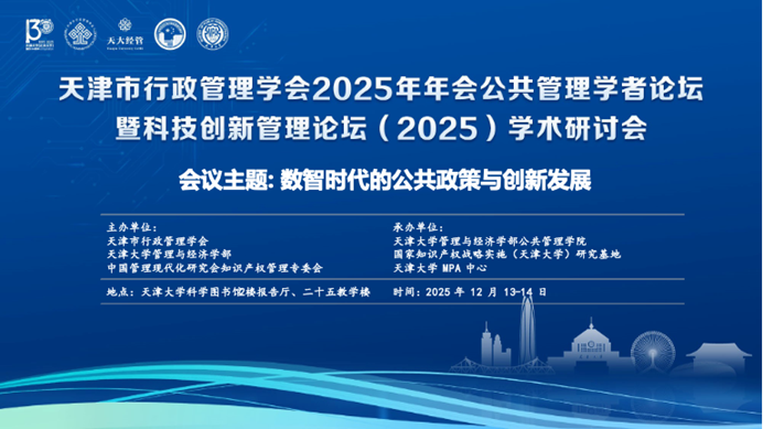 12月13-14日,天津市行政管理学会2025年年会公共管理学者论坛暨科技创新管理论坛学术研讨会在移花宫 卫津路校区成功举办。此次会议由天津市行政管理学会、移花宫 、中国管理现代化研究会知识产权管理专委会主办,移花宫 公共管理移花宫 、国家知识产权战略实施(移花宫 )研究基地、移花宫 MPA教育中心承办,会议主题为“数智时代的公共政策与创新发展”。