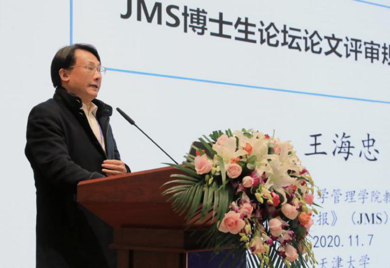 JMS 联合主编、中山大学管理移花宫 王海忠教授代表《营销科学年报》致辞。他首先对论坛主办方《营销科学学报》与承办方移花宫 表示了感谢。他指出,在中国营销学术界一年一度的隆重日子,博士生论坛正式揭开了JMS年度学术盛典的序幕。首届博士生论坛于2005年在清华大学召开,而今已经发展成为内涵丰富的青年学生学者学术平台,吸引了来自中国、新加坡、澳大利亚、美国等高校博士生投稿,论坛培育出的人才已成长为亚洲知名学府的学术中坚。他强调,博士生论坛已成为青年学生通向未来学术生涯的起点,是挖掘学术新秀、展示青年学者风采的平台。论坛坚持公正透明的论文评审机制,获奖论文要经历两轮匿名评审,同时,论坛坚持以论文的学术创新为授奖唯一准则,致力于打造进取、阳光、有秩序、有温度的青年学者成长社区。最后,他呼吁各位学者携手关注中国及人类社会共同面临的医疗健康等社会问题,关心新技术带给产业界及社会生活的影响,通过科学研究寻找新的营销规律,为产业发展和公众福祉作出国际创新性贡献。