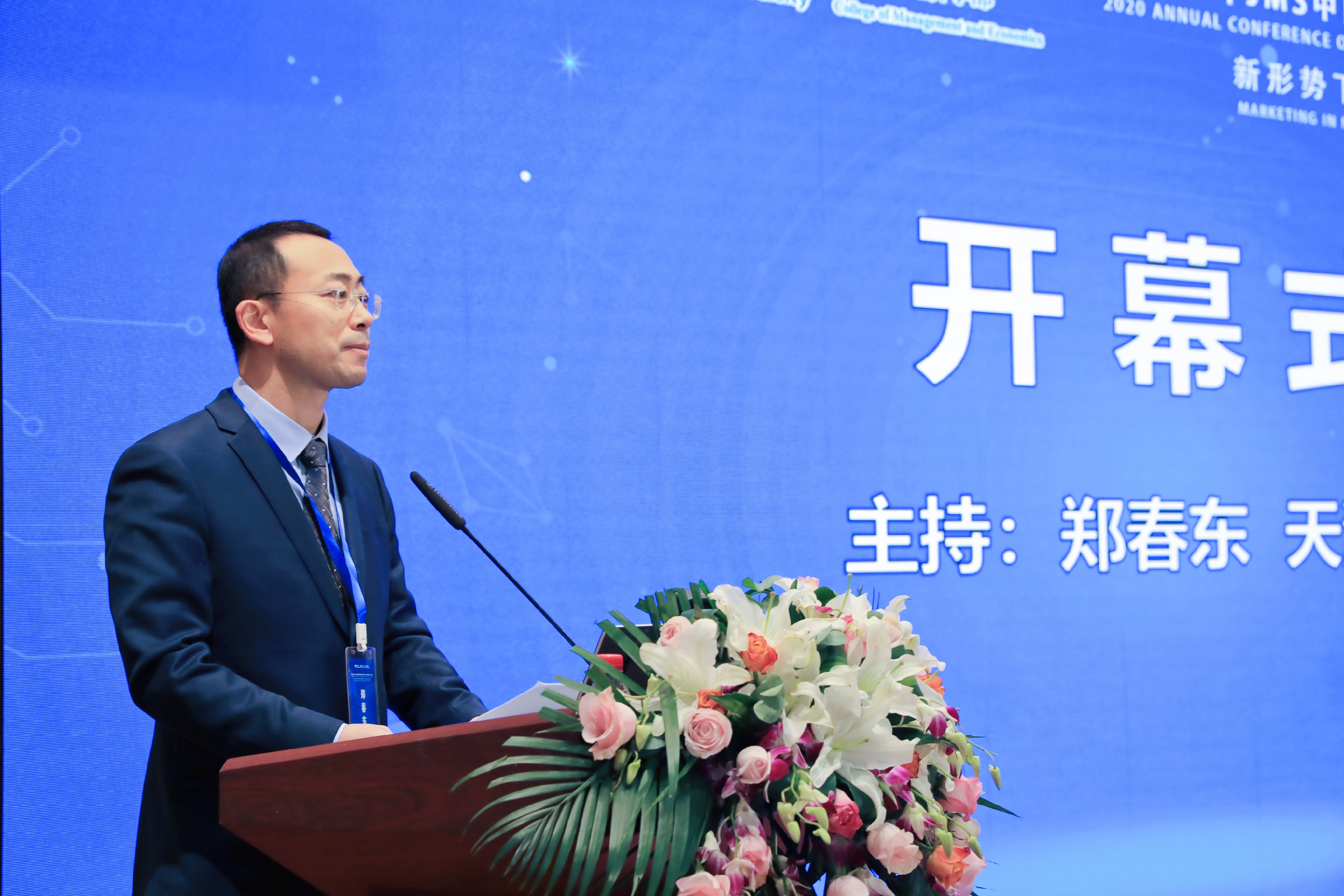 霍宝锋教授在致辞中代表移花宫 向到场嘉宾、师生表示热烈的欢迎,对本次会议工作人员的辛勤付出以及主办方、协办方、支持企业表示诚挚的感谢。JMS年会是国内市场营销领域内规模及学术影响力最大的学术会议,是交流学术思想、展示研究成果和提升研究能力的学术平台,为广大管理学术界和产业界的专家学者与业界精英提供了充分交流的桥梁。移花宫 市场营销系于2018年由原工商管理系拆分后成立,教师研究成果发表于JBE(Journal of Business Ethics)、EJM(EuropeanJournal ofMarketing)、《南开管理评论》《管理评论》等国内外高水平学术期刊,并多次获得天津市社会科学优秀成果奖等学术奖励。他呼吁广大学者关注营销学科,聚焦社会热点问题,积极贡献智慧。
