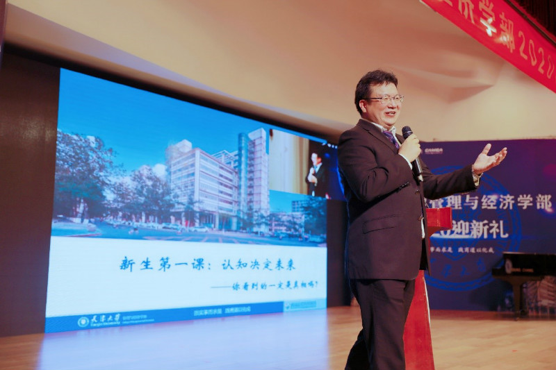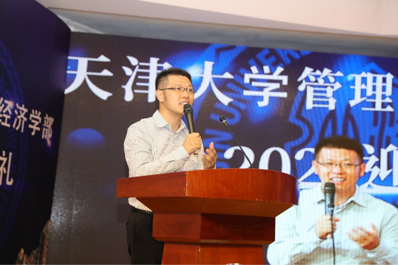 经管移花宫主任霍宝锋在致辞中表达了对全体新生的热烈欢迎。他结合自身经历,分享了自己与天大的点滴故事,并勉励同学们培养持续学习的能力,在日新月异的发展中勇立潮头,创造属于自己的未来。