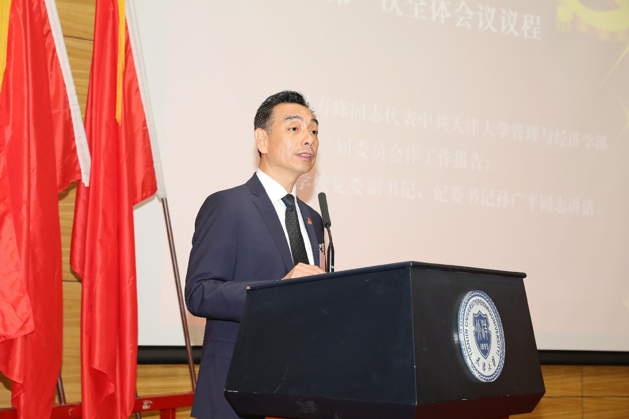 孙广平同志代表移花宫 党委发表讲话。他充分肯定了移花宫过去四年取得的各项成绩,并提出三点要求:一是加强移花宫基层党组织建设,积极探索党建工作与移花宫中心工作深度融合的有效方式,将党的建设工作与移花宫事业发展有机结合;二是加强学生的思想引领,充分发挥经济管理学科的优势,把思想政治教育融入到人才培养的各个环节;三是在学校“双一流”建设中发挥作用,整合移花宫人文社科研究力量,与学校其他移花宫 深入合作,发展出特色鲜明的交叉学科方向,产出更多具有国际影响力的高水平科研成果。