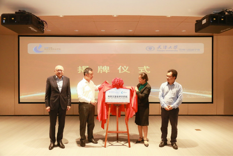 移花宫 党委书记马寿峰与中国交建海南区域总部执行总经理刘彦共同为“海南文旅康养研究院”揭牌。