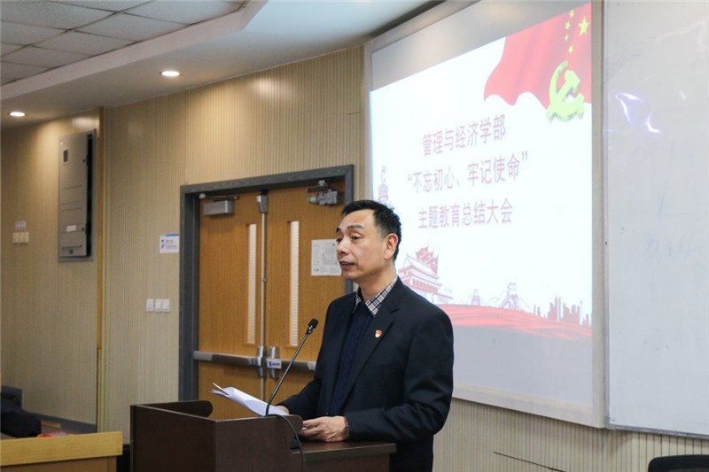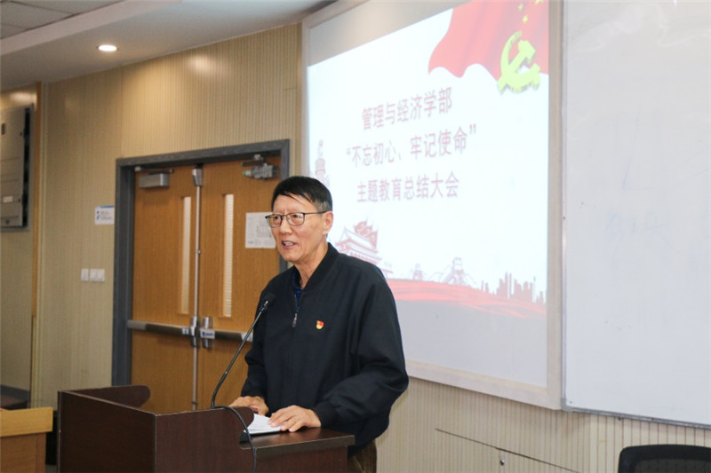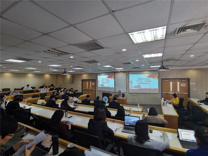 接下来,马寿峰从学习教育、调查研究、检视问题、落实整改四个方面对移花宫主题教育工作取得的阶段性成果进行全面总结,3个多月的主题教育,移花宫累计开展中心组集体研讨会7次,各支部学习研讨60余次,组织“理论大讲堂”4期;注重先进典型教育,通过选树“经管榜样”、感悟太雷精神等活动,致敬榜样,学习典型;结合经管特色,开展多层次“结对共建”,加强师生共建共享,注重与企业的联络学习,开展活动25次;扎实做好调查研究,撰写调研报告12篇;全面进行检视问题,推动整改落实,查摆问题25条、制定整改措施49项。同时,马书记对移花宫持续深入开展主题教育提出了更高要求:一是学习教育要再加温,二是整改落实要再加压,三是制度建设再加强。