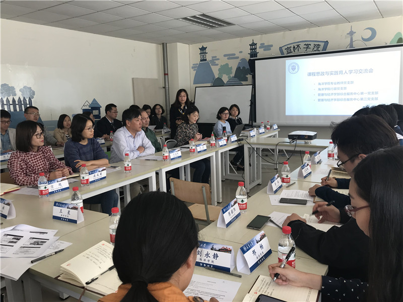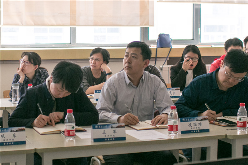 参会的老师们针对课程思政、实践育人以及党建工作等进行了深入的交流。海洋移花宫 魏皓教授、张学峰教授,青年教师薛彬、常帅等,从自己所承担的课程出发,介绍了自己如何将“思政”融入到课程教学中的心得体会。经管移花宫岳晋萍、高成菊等老师们就对课程思政改革的理解、思政教育与专业课程内容的融合、求实务真精神和敬业精神在专业课程中的融入,引导学生端正思想、扎实理论、帮助学生树立正确的人生观、价值观、世界观,对如何把看似枯燥、难以理解的专业知识变得生动、有活力、有魅力等方面展开了热烈的讨论。