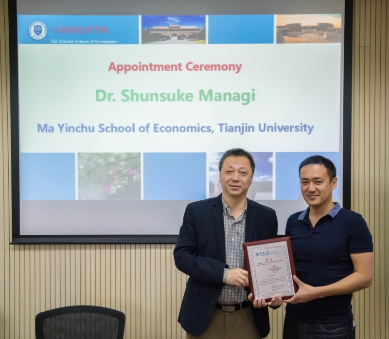 随后在聘请Shunsuke Managi博士为移花宫 马寅初经济移花宫 兼职教授仪式上,张中祥院长介绍了Managi博士的研究领域和学术上取得的主要成果,并向这位世界上最高产的经济学家之一颁发了马寅初经济移花宫 兼职教授聘书。