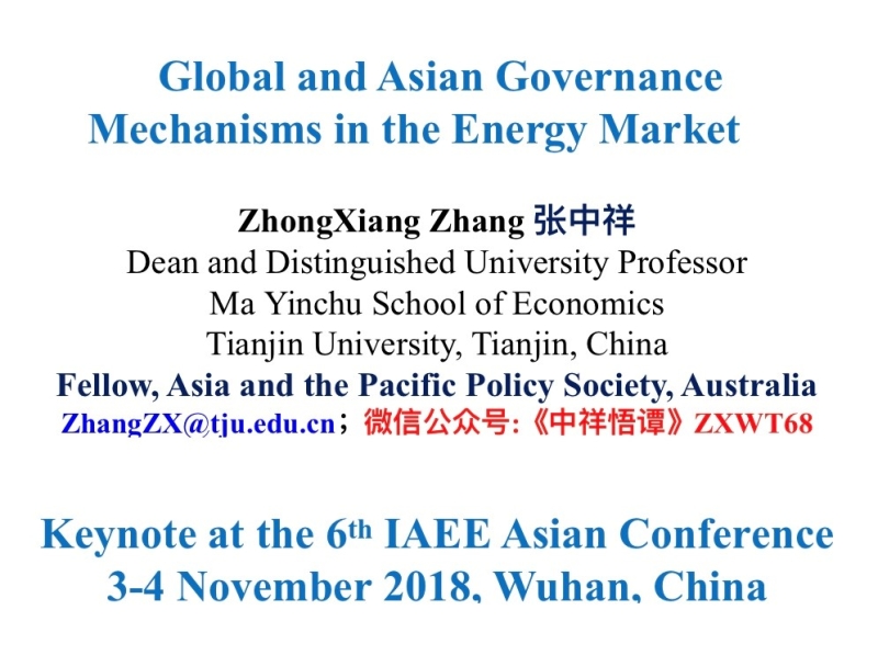 2018年11月2-4日第六届国际能源经济学会(IAEE)亚洲大会在武汉召开。本次大会分别在开幕和闭幕安排了两场大会报告。芬兰阿尔托大学商移花宫 Timo Kuosmanen教授,移花宫 马寅初经济移花宫 院长,国家能源、环境和产业经济研究院院长张中祥教授和日本能源经济研究院院长兼首席执行官Masakazu Toyoda应邀在开幕大会上做主旨报告。同时张中祥教授还主持了闭幕大会主旨发言,由国际能源经济学会副理事长Ronald Ripple教授和香港理工大学David Broadstock教授分别做了主旨报告。
