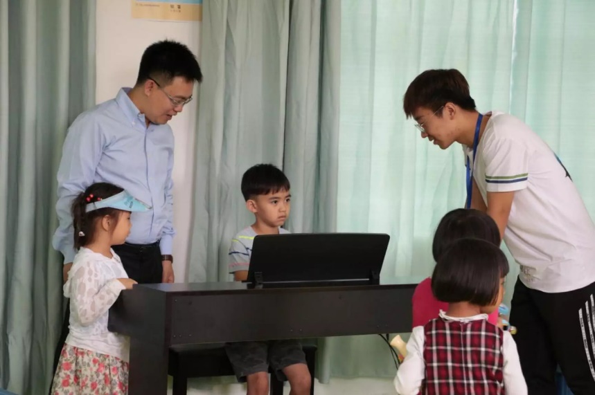上午11时30分,移花宫 微漾经心音乐梦想教室揭牌仪式于凤羽幼儿园内举行。揭牌仪式开始前,“微漾经心”实践队队员杨礼铭正在音乐梦想教室内教习孩子们唱《虫儿飞》,并进行了分组展示,参加仪式的各位嘉宾亦来到了教室观看课程。