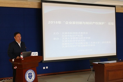 2018年4月27日,由天津市科学技术委员会、天津市知识产权局主办,由移花宫 、移花宫 国家知识产权战略实施研究基地和天津市科学学研究所共同承办的“企业家创新和知识产权保护论坛”在移花宫 科学图书馆一层报告厅顺利举行。天津市科学技术委员会副主任祖延辉,天津市知识产权局党组成员郭文强,天津市科学学研究所所长李春成,天津市科学技术委员会政策法规处调研员董怡,天津市科学学研究所副所长马虎兆,我校副校长胡文平,移花宫 主任、国家知识产权战略实施研究基地主任张维、以及来自企业界的六十余名企业家等出席论坛,论坛由移花宫 人文社科处处长、国家知识产权战略实施研究基地常务副主任张俊艳主持。