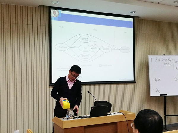 各参赛教师高度重视本次讲课大赛,赛前做了充分的准备,在15分钟的讲授时间里将管理经济学科的魅力展现的淋漓尽致。如潘静洲讲授《组织行为学》中的情绪管理,用诙谐幽默的语言讲述生活中的例子,在讲课最后还用实验的方式表现人的情绪是有限的这一概念;刘大勇在介绍《经济学》中的价格弹性时,用动画的形式深入浅出的讲解这一价值规律;吴懿讲授《电子支付原理》中的移动支付,用视频的形式引入话题,并举了大量生活中的实例进行讲解。各位老师的讲解精彩纷呈,体现出了经管移花宫青年教师较高的授课水平。