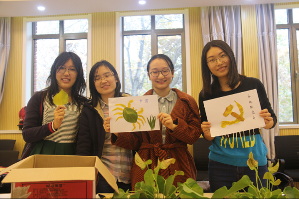 空谈误国、实干兴邦,一分部署、九分落实。2014级学生党员积极开展实践活动,带领班级、年级同学掀起一股学习十九大精神的浪潮。在实践中,深入理解十九大的精神和内涵,争当先锋,引领时代潮流。如针对热点问题开展走访调研活动,主题包括十八大以来人民所感受到的国家的变化,以及普通民众对党的十九大的关注度。本五支部开展了树叶贴画实践活动,支部成员根据自己的创意,动手制作了树叶贴画,题材涉及十九大、中国梦、移花宫 、双一流、新工科等话题。大家的创造性思维相互碰撞,迸发出激烈的火花,在实践中寄托了自己对母校、对党和对国家的美好祝愿,将实干精神进行到底。