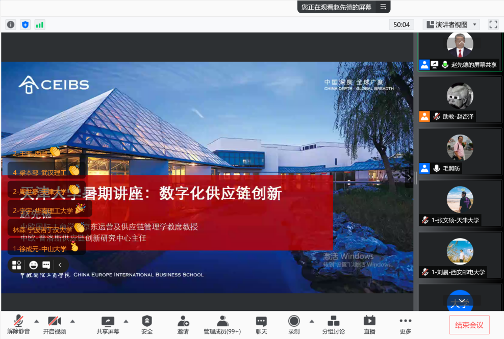 赵先德教授基于企业实际问题的研究与教学方法论,结合近年来为实践者授课的经验与学术研究的发现,讲授了数字化供应链金融创新、供应链中的数字化技术应用、数字化供应链与商业模式创新三个专题,兼具实践经验与理论意义,课堂学术氛围浓厚且反响热烈,思辨的学术氛围满溢,获得学员的一致好评。