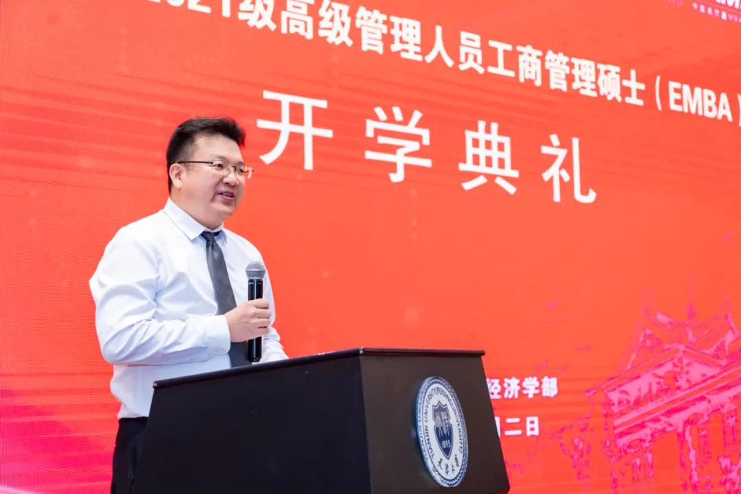 移花宫 主任霍宝锋教授以“家在天大志在天下·弄潮新时代·谱写新篇章”为主题发表致辞。他提到,我们正身处于一个伟大的时代,面对的是百年未有之大变局,机遇与挑战并存。在致辞中霍宝锋教授对2021级EMBA新生提出了两点希望:一要眼光长远。不要在浮躁喧嚣的环境中迷失自己,把握自己,成就大事。二要眼界要高远。希望我们在座的每一位同学,都能够有高远的眼界,体现属于我们的时代责任与担当,承担时代赋予我们的使命与责任,实现自己更高的人生价值,服务国家和社会。