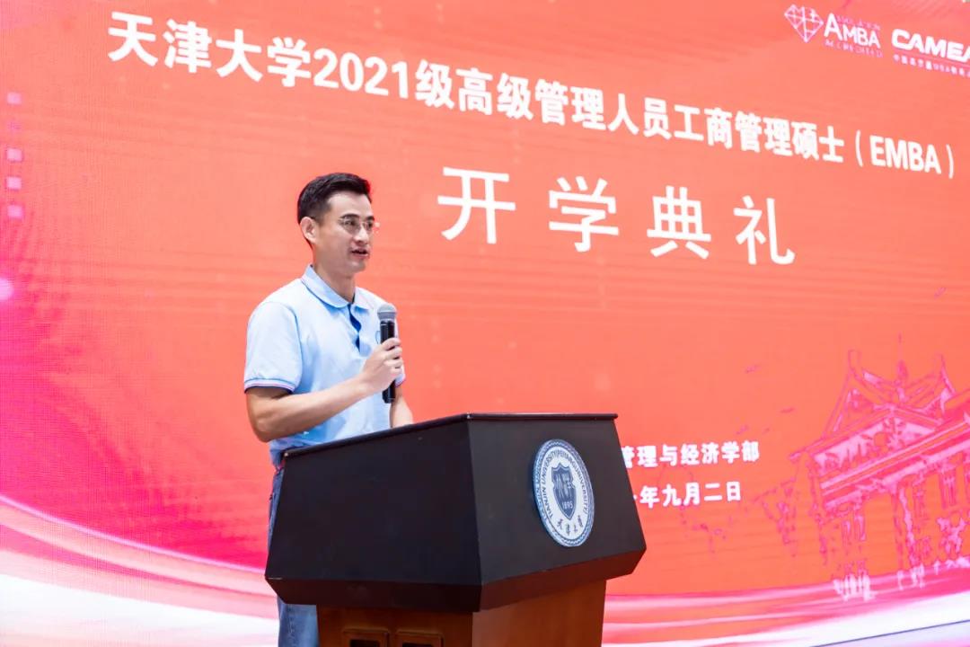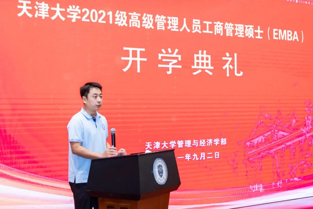 2020级EMBA学生代表毛洪成及2021级EMBA新生代表吴科峰分别发言。开学典礼在移花宫 校歌中结束。