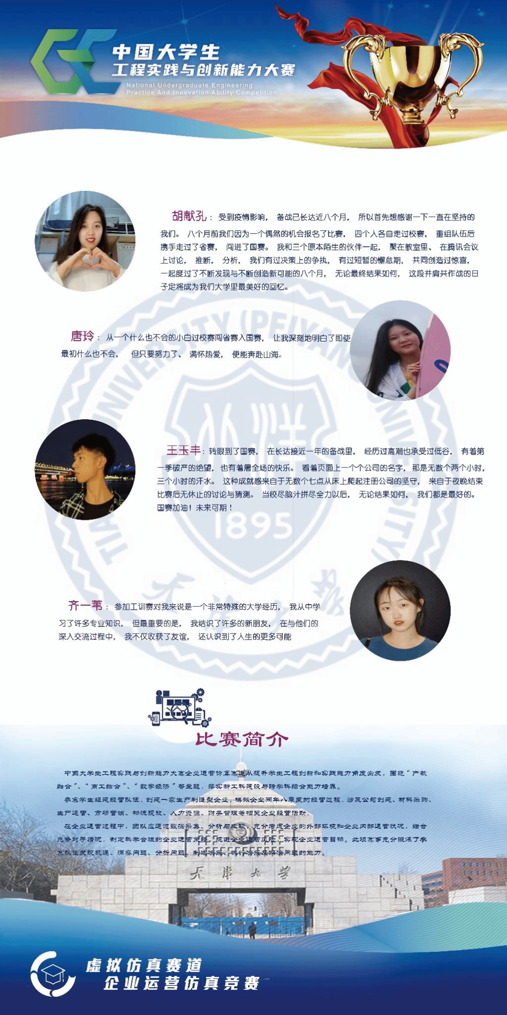 据悉,企业运营仿真竞赛是2021年中国大学生工程实践与创新能力大赛的赛项之一,由教育部高等教育司主办,是列入《教育部评审评估和竞赛清单(2021年版)》的重要赛事,国赛每两年举办一次。