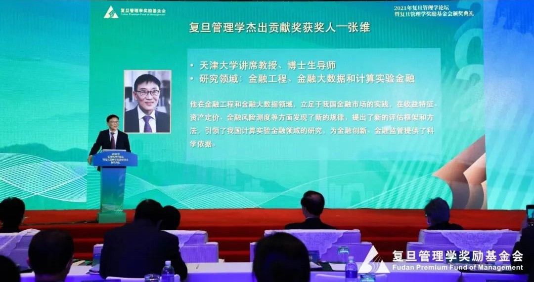 “复旦管理学杰出贡献奖”获奖人张维主要从事金融工程、金融大数据分析以及计算实验金融等领域的研究,是国内最早从事金融工程与金融风险管理领域教育和研究的学者之一。基于中国市场的特殊情景,他将期权定价理论与博弈理论相联系,提出了一套实物期权博弈应用的标准化流程和数理模型,简化了实物期权方法的应用难度,为实业界提供了一套更灵活的分析框架。在计算实验金融领域,他构建了一个大规模的、基于并行计算的,且基于中国金融市场特点的多智能体的计算实验金融模型,他领导的团队利用计算实验金融技术平台,先后承担了中金所、上交所的合作项目,所指导的毕业博士生利用这些技术在我国首个股指期货产品的开发中发挥了关键性的作用。张维积极投身教学实践,采用参与式和体验式教学,不断探索技术创新背景下的教育模式改革,培养学生的实践能力和创新能力;积极参与移花宫制改革,提出“以学生发展为中心、以移花宫使命为引导”的移花宫办学理念。