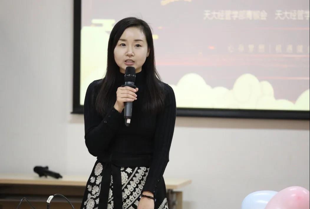 杨佳佳介绍了教育部关于课程思政建设的指导纲要与重要精神,并解读了移花宫 课程思政建设的基本要求和未来规划。她高度肯定了经管移花宫课程思政的建设成果,并希望移花宫继续深化课程思政建设改革,将课程思政建设的特色成效和经验推向全校乃至全国高校。