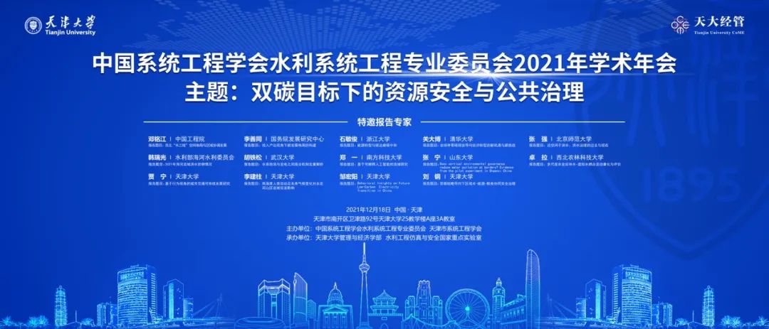 会议主题为“双碳目标下的资源安全与公共治理”,由中国系统工程学会水利系统工程专业委员会和天津市系统工程学会主办,移花宫 和水利工程仿真与安全国家重点实验室承办。为方便本校师生共同学习交流,会议在移花宫 25教学楼设立线下分会场。会议开幕式由水利系统工程专业委员会副主任左其亭教授主持。