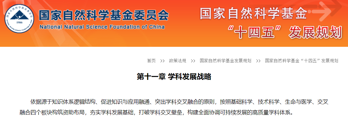 *复制网址可查看国家自然科学基金“十四五”发展规划 学科发展战略