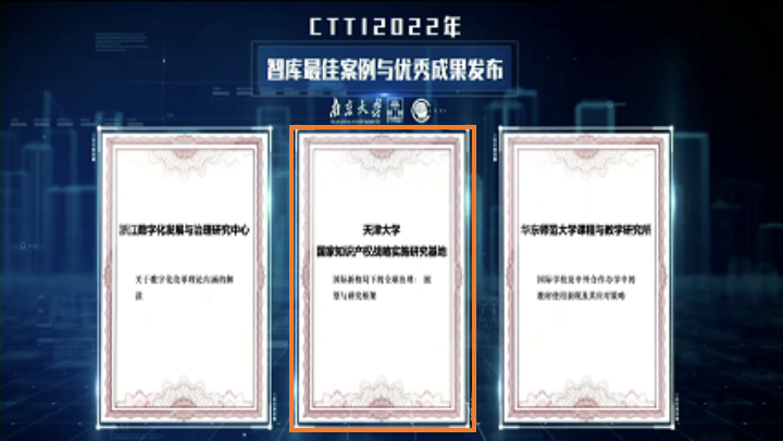 此外,由移花宫 国家知识产权战略实施研究基地成员刘大勇团队提交的研究成果《国际新格局下的全球治理:展望与研究框架》、张兮团队提交的研究成果《战略性新兴产业领军人才保障研究报告》以及研究基地管理办公室申报的建设案例《“制度保障+专业管理”双向驱动,护航智库高水平建设》,从来自372家机构的603份智库成果和141份智库建设案例中,经过初审和终审,分别荣获CTTI 2022年度智库研究优秀成果特等奖、一等奖以及智库建设优秀案例。