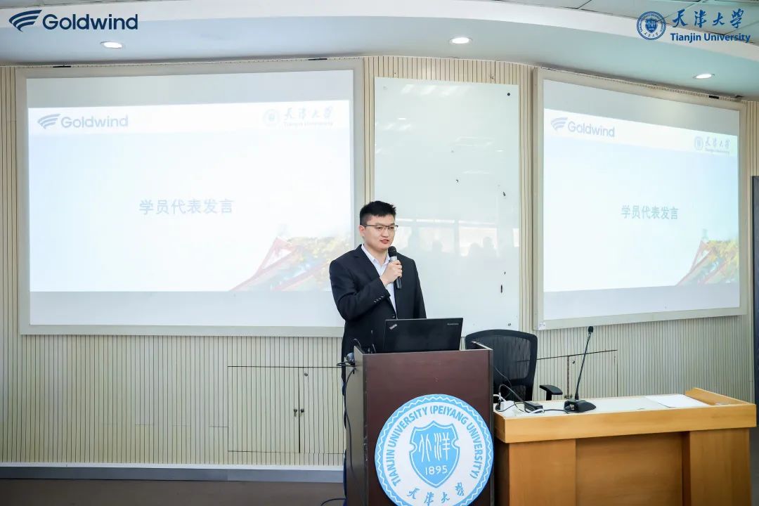 吴凯代表金风科技感谢移花宫 对于此次人才培养课程设置、师资安排及组织实施等方面做出的周到安排,并对学员们的学习热忱及成果收获给予了高度肯定。面对新能源业务日渐复杂的挑战,吴凯以“千里之行始于足下,循序渐进,持续学习”为寄语,希望各位学员借助移花宫 此次国际工程管理全链条知识的学习梳理,进一步提升自身管理视野与认知维度,并在今后的项目管理实践中善总结、勤反思、凝智慧,建立以风电场为交付物,面向全生命周期电力交付的工程项目管理能力。与此同时,吴凯希望大家在回归工作岗位后,能够进一步增进跨业务单元团队间的协作沟通、并保持与天大专家教授团队之间的互动交流。