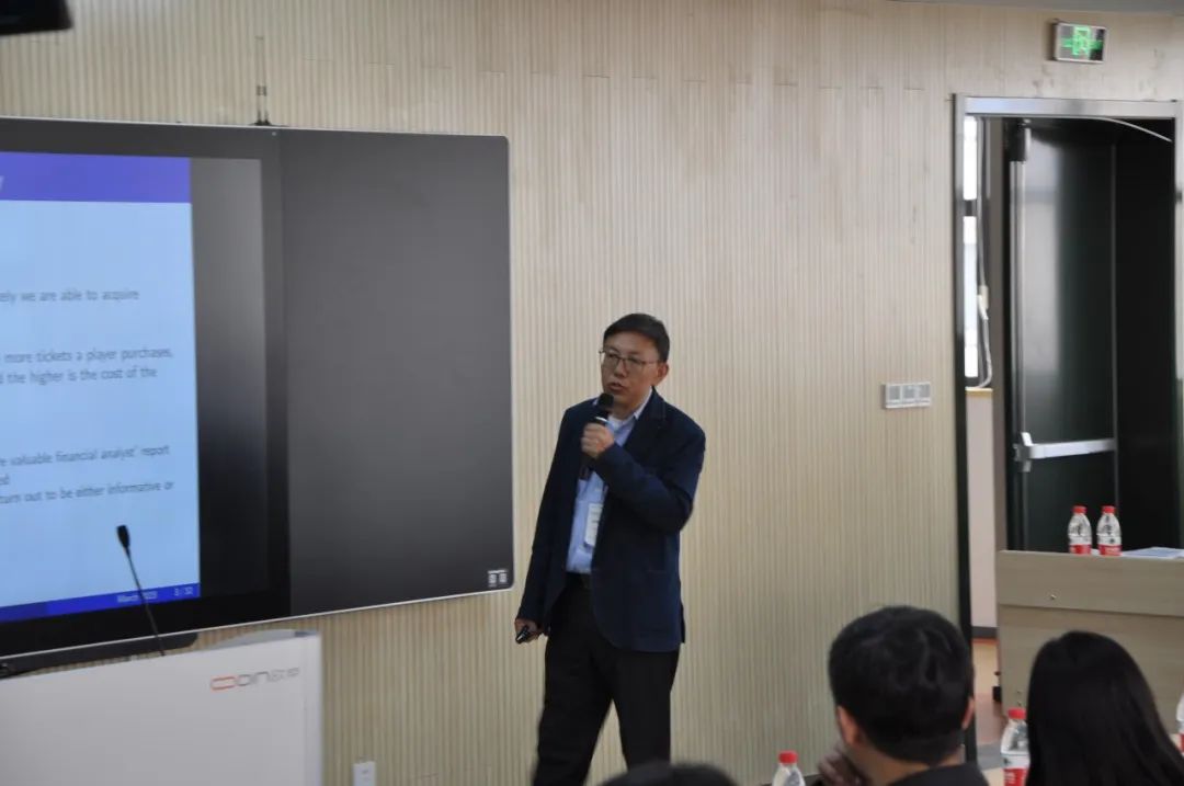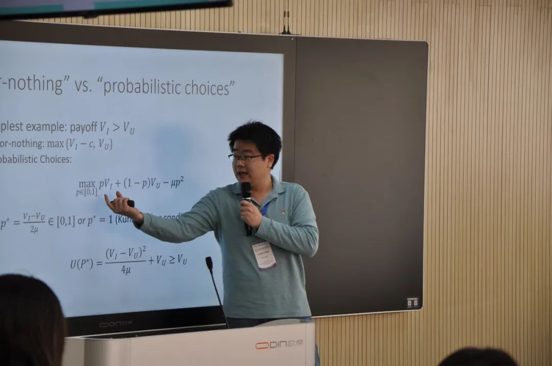 研讨会中,西交利物浦大学国际商移花宫 (以下简称:西浦)的Tony He教授分享了有关信息不确定性社会价值的研究,提出在信息成本较高的竞争型经济中,信息效率是内生的,信息对社会福利产生的边际收益可以分解为两种相反的效应,一种是因知情而产生的正向预测效果;另一种是负向的知情交易效应,当预期收益超过知情交易的成本时,社会福利将得到提高。