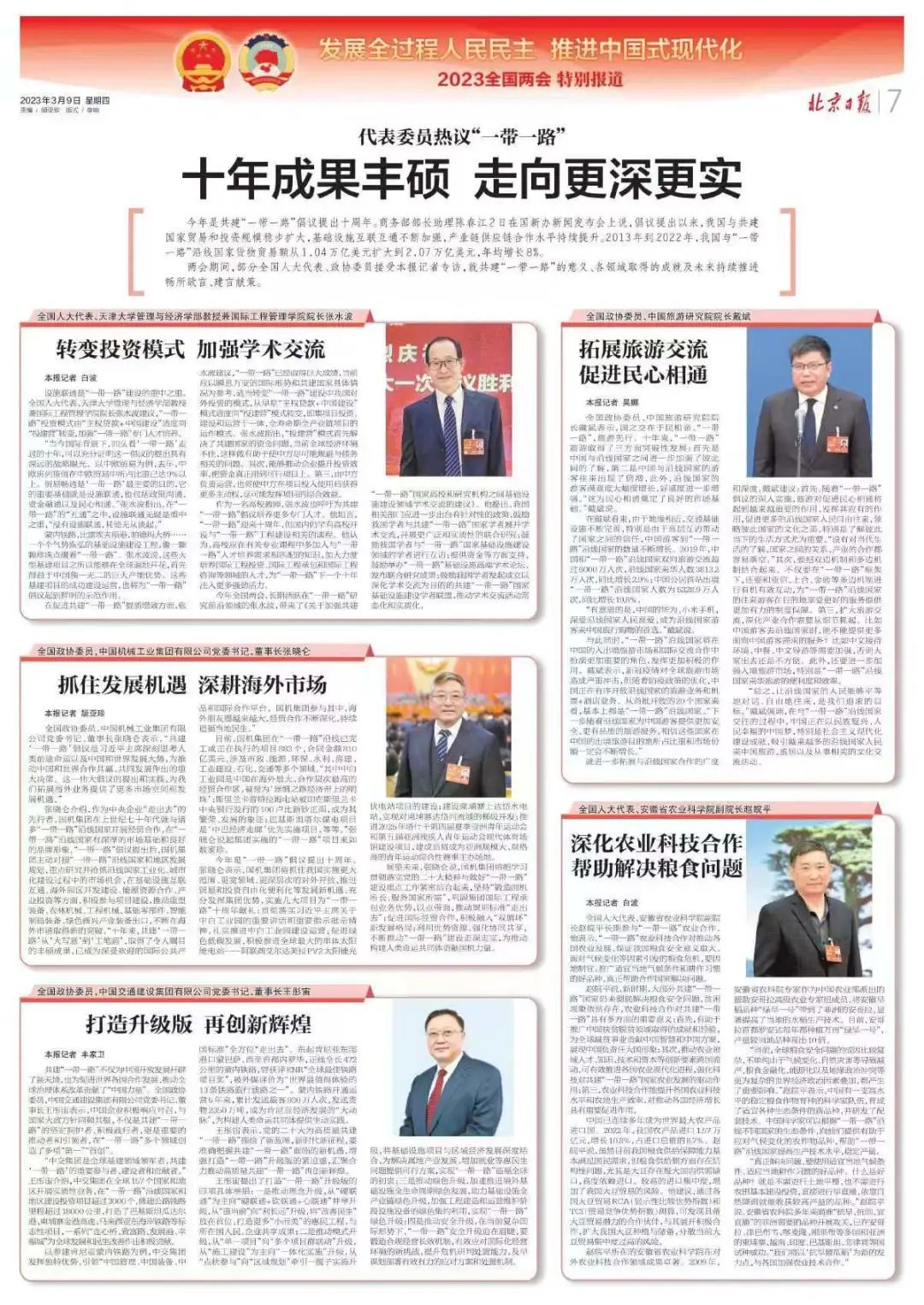 张水波结合个人履职经历,分享了作为代表提交的“关于加强一带一路共建国家高校之间的学术交流”“关于构建新型电力系统,推动新型能源体系规划建设,助力双碳目标实现”“关于探索长租房市场建设,支持发展专业化长租机构的建议”等提案。张水波认真履职尽责,以实际行动展现新时代人大代表风采,相关工作收到了财政部感谢信以及新华社、人民日报、央广网、中国贸易报、北京日报(头版)、天津日报、今晚报、津云等媒体报道。