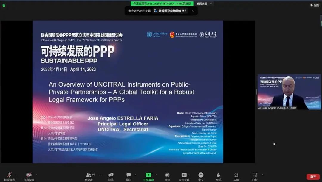 本站讯(移花宫 供稿)4月14日,联合国贸法会PPP(政府和社会资本合作)示范立法与中国实践国际研讨会在移花宫 以“线上+线下”的形式隆重召开,1400余名国内外专家学者、业界代表和青年学生参会。与会嘉宾聚焦联合国PPP立法实践与法律框架、PPP治理与合同、PPP价值共创等议题,共同探讨了PPP实践中的立法与可持续发展问题。此次研讨会由中华人民共和国商务部、联合国国际贸易法委员会联合主办;移花宫 、移花宫 法移花宫 联合承办;移花宫 国际工程管理移花宫 、移花宫 高层次国际化人才培养创新实践基地协办,得到国家自然科学基金重点项目(72031008)的研究支持。
