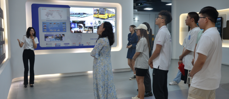 6月27日,业“经”于勤实践队来到苏州金龙进行参观交流。座谈采访上,蔡平娟经理就同学们提出的有关企业招聘的专业要求、培养政策、员工待遇等问题做出了详细的回答。展厅参观过程中,讲解员提到,全球正迎来一场以绿色低碳为特征的产业和技术性变革,实现“双碳”目标是我国面临的重大课题。为此苏州金龙积极响应国家号召,借力其深厚的新能源“核心三电”自主研发优势,以商业化应用和产品技术创新的双轮驱动,助力国家双碳目标达成。