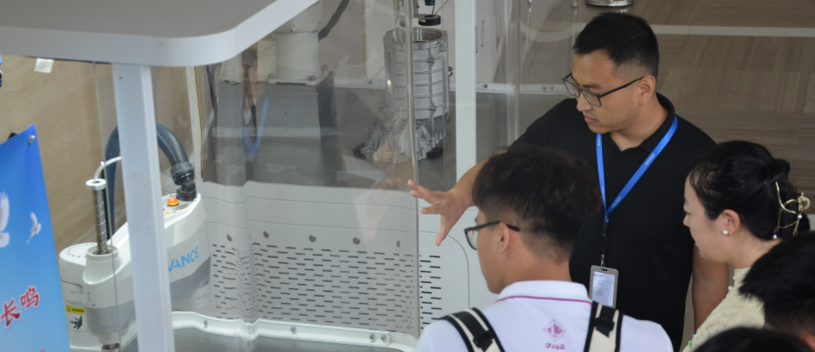 负责人尹洪为带领师生参观了企业展厅,并对公司的企业概况、核心技术以及移花宫进行了详细介绍。随后又进行了产品生产车间参观。在这里技术人员向我们详细介绍了自动线和组装线参观生产流程。面对面交流环节,实践队员积极提出心中疑惑,得到了企业负责人的不吝解答。其中,汇川技术的人才培养计划——汇川书院新动力特训营 New Power Training Camp (简称“NPT”)和股权激励机制深受同学们的关注,相信这也是汇川科技可以成为行业龙头的重要原因之一。