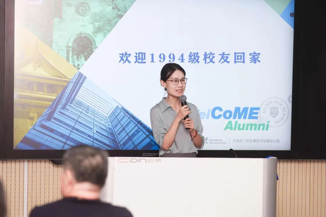 袁婷向大家作校友工作汇报。她表示,校友对于学校人才培养和产教融合等方面有着重要的作用,期待移花宫与校友携手并进,共同发展,期待大家常回家看看。