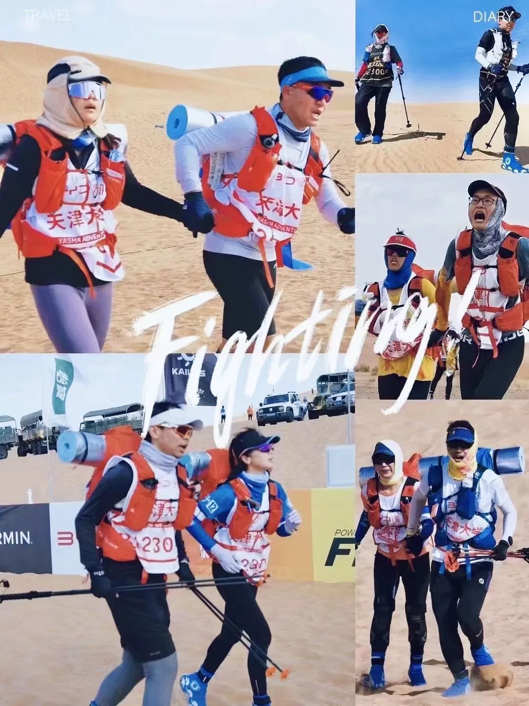 比赛过程无比艰辛,三天70公里的沙漠挑战,昼夜温差大,早上4点多就要起床准备比赛,白天酷暑难耐,全靠队员们的体能和意志力坚持着顺利抵达终点。
