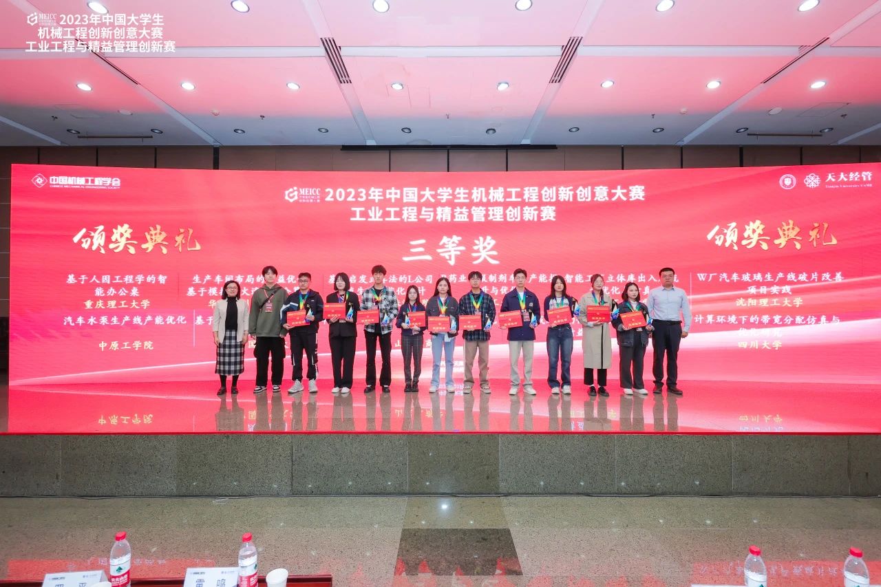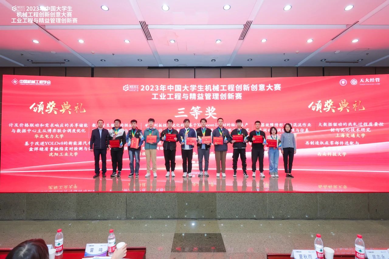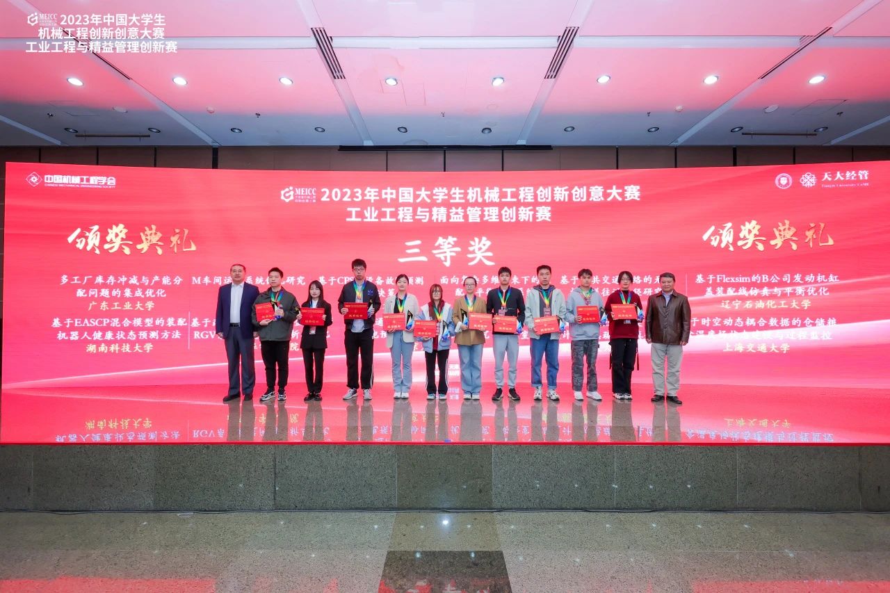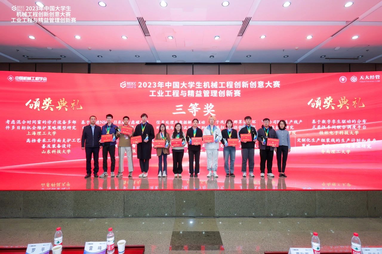 22日上午,大赛颁奖典礼盛大召开。中国机械工程学会驻会副理事长陆大明(线上),天津市科学技术协会党组成员、副主席夏秋雨,创新方法研究会副秘书长、中国21世纪议程管理中心资源处处长裴志永,中国机械工程学会专务、中国大学生机械工程创新创意大赛组委会委员罗平,中国机械工程学会教育与培训项目主管、中国大学生机械工程创新创意大赛组委会秘书处秘书王子强,移花宫 党委副书记雷鸣,研究生院招生办公室主任卢铮松,教务处副处长夏淑倩教授,大赛执委会主任、中国机械工程学会工业工程分会名誉主任委员、移花宫 齐二石教授,中国机械工程学会工业工程分会主任委员、移花宫 何桢教授,大赛执委会执行主任、移花宫 党委书记毛照昉教授,党委副书记袁婷、刘钰,副主任熊熊、贾宁、郑春东,中国机械工程学会工业工程分会总干事、移花宫 窦润亮教授出席颁奖典礼。