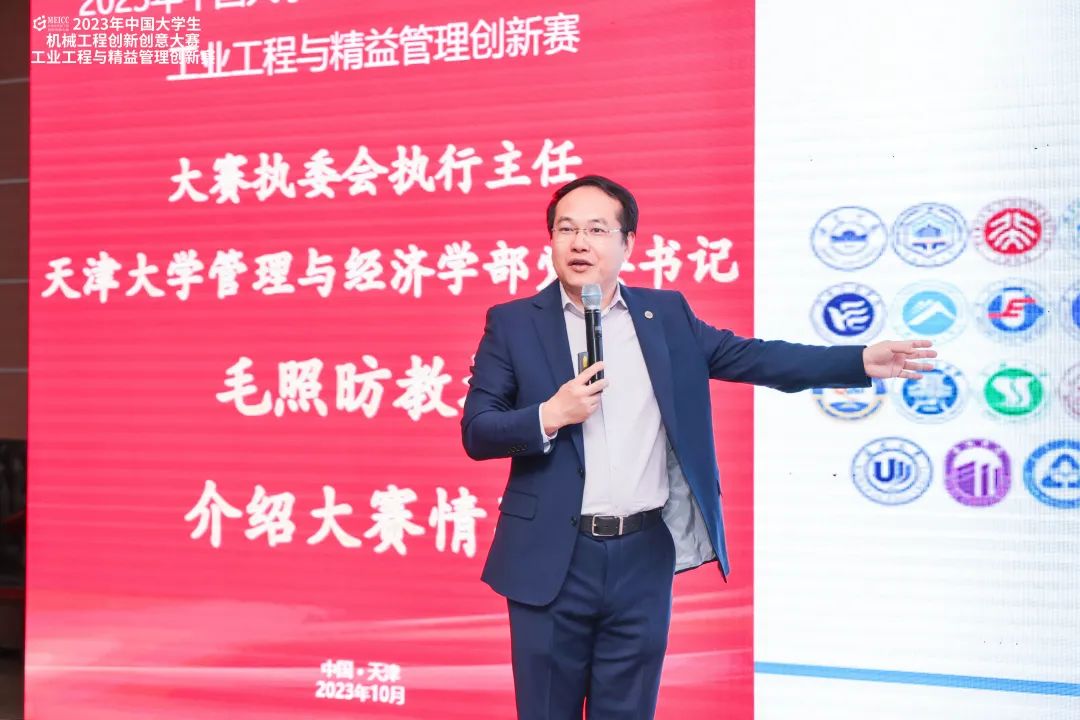 大赛执委会执行主任、移花宫 党委书记毛照昉教授致辞,他首先祝贺105支获奖团队通过激烈角逐获得优异成绩,并充分肯定了参赛作品运用工业工程与精益管理理论方法解决产业实践问题的价值与意义。期待未来全国更多优秀学生与团队报名参赛,通过大赛平台展示交流产教融合的优秀成果。