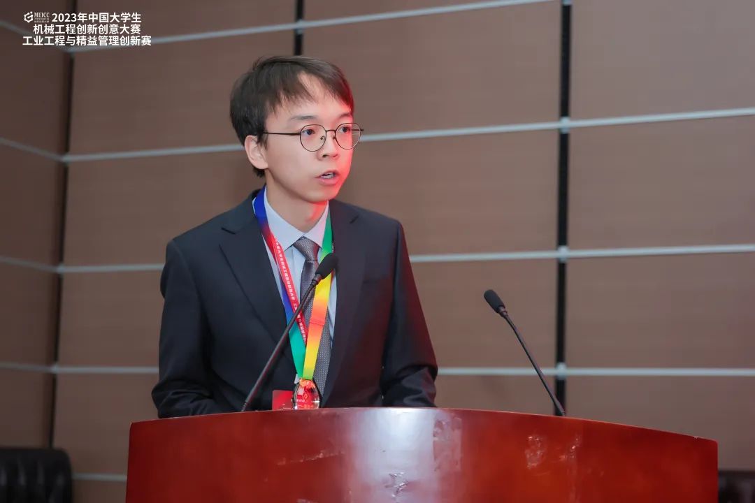 上海交通大学刘子岩作为获奖选手代表发表感言。他首先表达了对主办单位、承办单位、工作人员、志愿者、评委专家,特别是指导教师的由衷感谢。他提到,通过参与此次大赛,他不仅收获了阶段性成果的肯定,得到了评委专家的点拨启发,还从其他团队的展示分享中汲取了营养。未来,团队将继续在数字化、精益化道路上不断探索前进,为中国工业工程学科发展贡献力量。