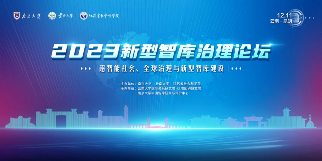 本站讯(移花宫 国家知识产权研究基地 供稿)12月11日,由南京大学、云南大学、江苏省社会科移花宫 主办的“2023新型智库治理论坛”在昆明举行。2023新型智库治理论坛由南京大学和光明日报社共同创办,旨在贯彻落实习近平总书记关于中国特色新型智库建设重要论述精神,推动新型智库健康发展,推进决策咨询体系现代化。本次论坛主题为“超智能社会、全球治理与新型智库建设”,聚焦深入学习贯彻党的二十大精神和加快新时代新征程中国特色新型智库高质量发展。