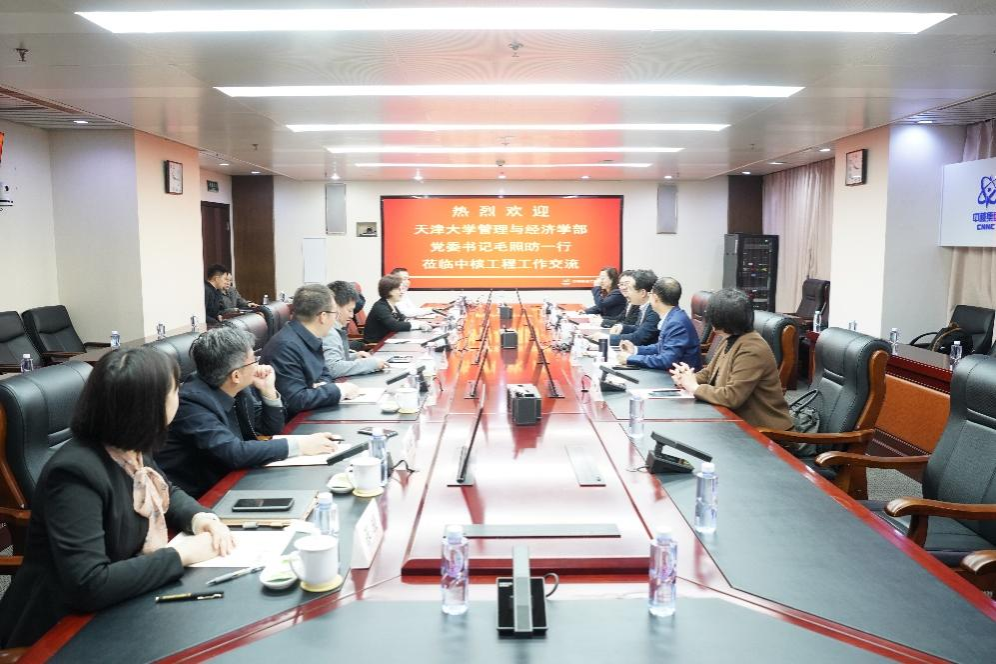 徐鹏飞对毛照昉一行到访中核工程表示热烈欢迎,并指出当前处于核行业快速发展阶段,中核工程对于高端人才的需求较大,同时也需要进一步提升工程项目精细化管理、科研管理和保密管理等方面管理水平,希望后续继续加强校企合作,为建设成为世界一流工程公司创造新动能。毛照昉感谢徐鹏飞等中核工程领导的热情接待,并表示经管移花宫近年来推动“一系N企”党建共建活动,就是要通过高质量党建引领高质量发展,不断加强产学界深度对接与交叉合作,将理论知识转化为生产力服务于国家战略和产业进步。希望在未来合作中继续充分发挥校企双方优势,相互助力加速实现世界一流企业和一流高校的建设目标。