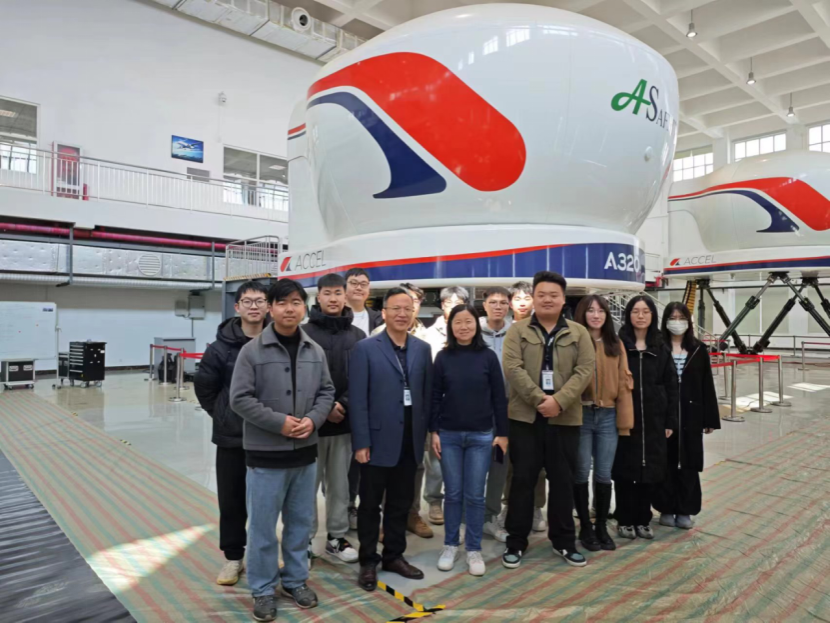 座谈交流结束,学生们参观了安胜公司的工作区域,并在工作人员的指导下先后体验了VR模拟仿真系统和波音737飞行模拟机,切实了解了该公司的先进技术和产品情况。