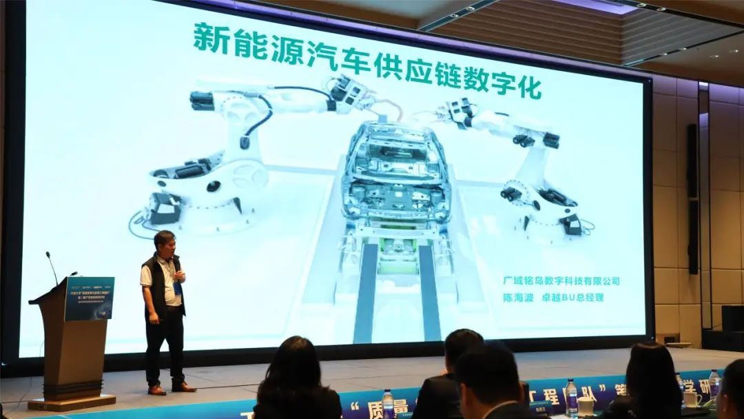 广域铭岛数字科技有限公司卓越BU总经理陈海波,中国汽车技术研究中心有限公司首席专家、中汽研管理科学研究(天津)有限公司总经理陈科,上汽通用五菱汽车股份有限公司供应链发展专家杨燕文分别以“新能源汽车供应链数字化”“汽车企业质量管理数字化工作进展”“基于协同制造的智慧供应链生态系统构建”为题分享了在智能制造领域质量管理方面的见解与实践经验。