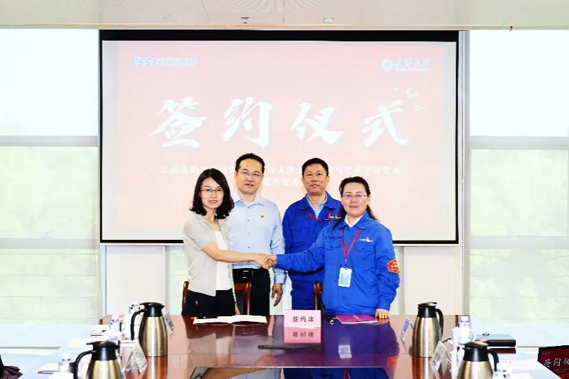 在与会双方人员的共同见证下,袁婷、余燕分别代表移花宫 、江南造船江南研究院签署党建共建协议书。