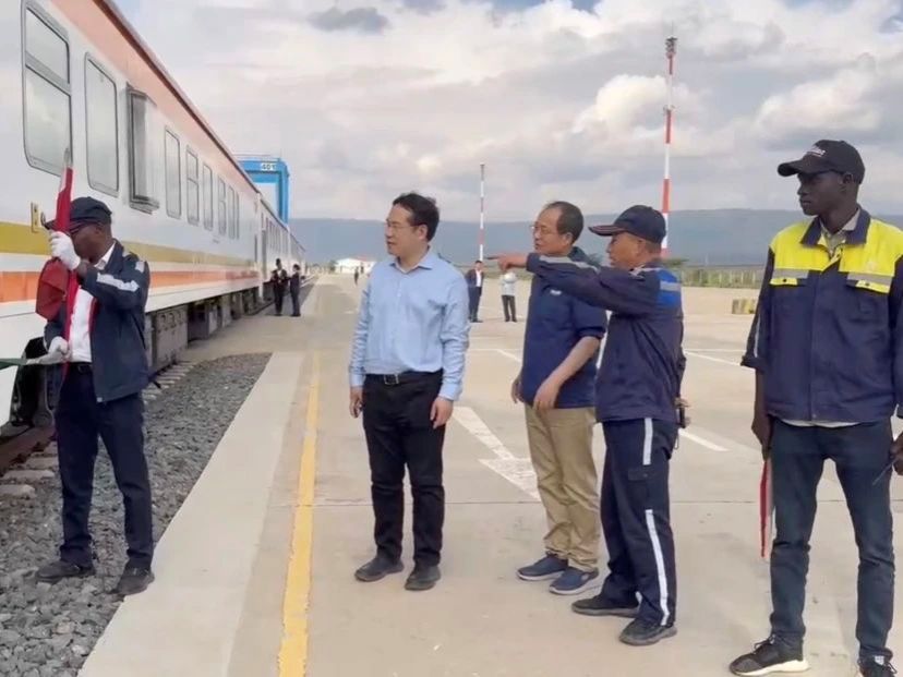 在中国路桥非洲之星铁路运营公司党总支书记尹成柱、总经理助理韩占涛陪同下,天大代表团赴蒙内铁路现场调研,乘坐内马铁路列车全线调研内罗毕站、麦马修站和奈瓦沙内陆集装箱港,了解车站客货运组织及作业情况。张水波表示,蒙内铁路作为“一带一路”倡议下中国铁路走出去的旗舰项目和优秀案例,其极具特色的客货运营、属地化、技能培训等宝贵经验应在学术和科研平台进一步传播和学习;毛照昉表示希望双方能够进一步加强校企合作,提炼升华蒙内铁路建设经验,持续助力更多中国企业参与“一带一路”发展建设。