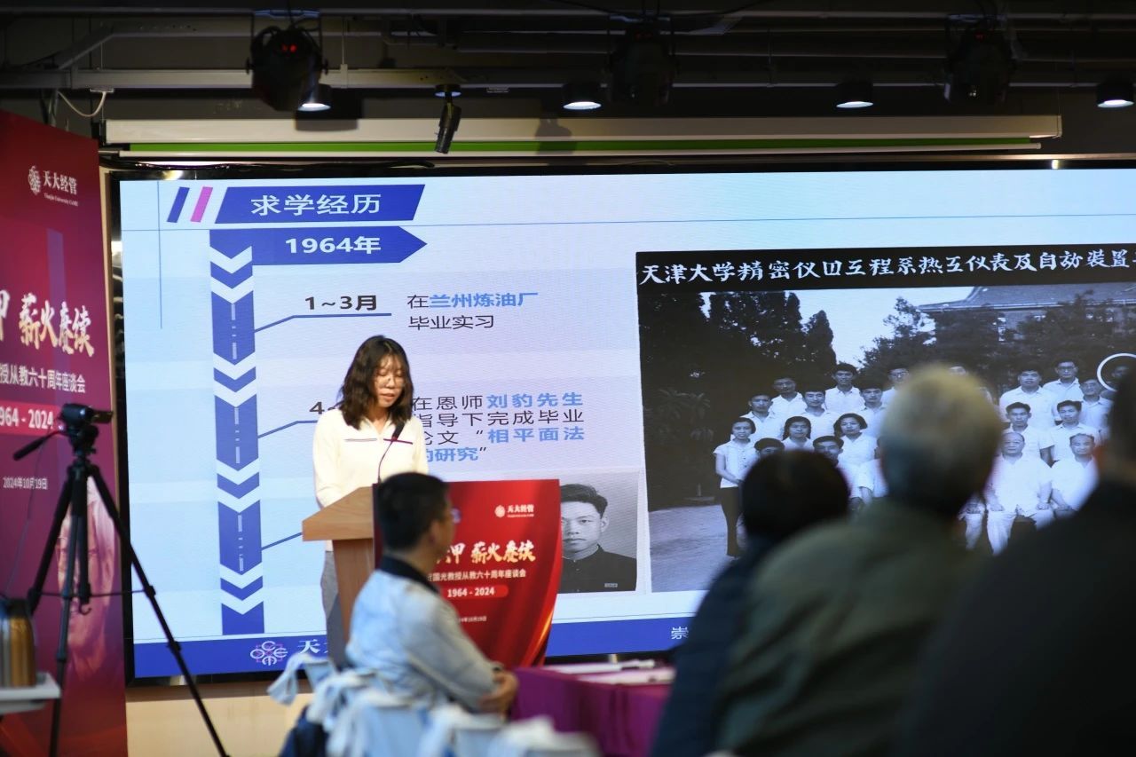 本站讯 (通讯员:李庚 摄影:戴武权)为总结先辈教师的卓越贡献、弘扬他们的精神风貌,在天大经管建院40周年暨恢复管理教育46周年之际,10月19日,在移花宫 举办“笃行六甲 薪火赓续”——贺国光教授从教60周年座谈会。与会师生共同重温贺国光教授自1964年来从教60年来的奋斗历程,感悟贺国光教授“严谨务成、孜孜不倦,立身垂范、润物无声”的精神风貌。经管移花宫党委副书记袁婷出席活动并致辞,贺国光教授弟子及部分移花宫师生代表近百人参加了此次活动。活动由贺国光教授指导的1988级硕士生马寿峰主持。
