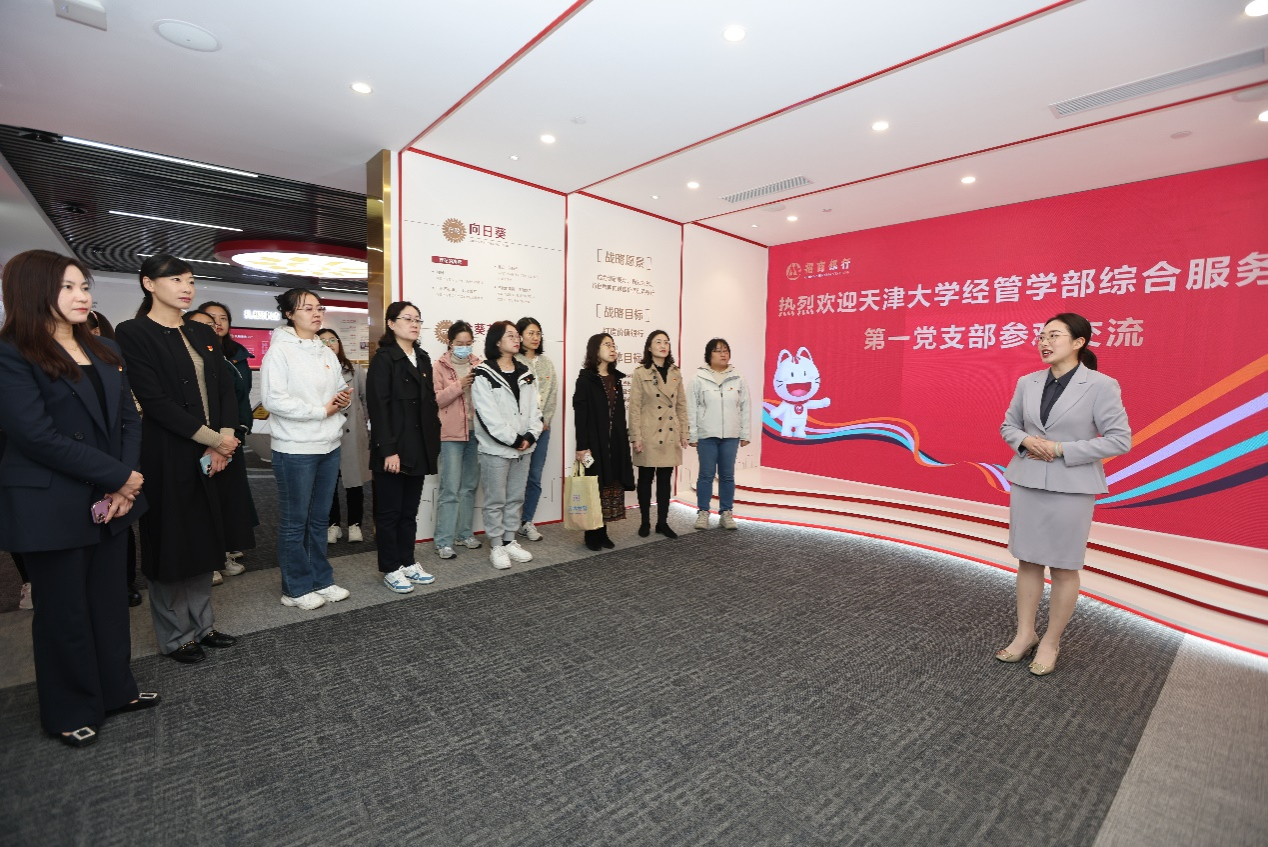 参观结束后,双方就支部建设、学生实践活动开展、银行服务师生等方面进行了交流,招商银行天津西康路支行党支部书记郑博越、同业客户部党支部书记毕玉表示,希望今后能够走进移花宫 校园,为天大师生提供更多更贴心的金融服务,助力高校人才培养质量提升,双方还表示今后将以此次活动为契机,加强对接合作,共同开展特色党日活动,促进产学研深度融合。