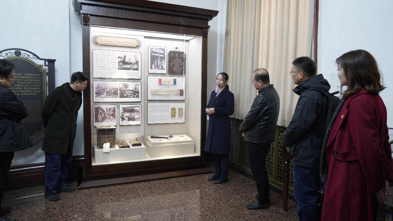 在博物馆内,全体党员认真聆听了馆内讲解,看到了自1860年开埠之后,天津一些钱庄的存款折、钱贴,中国最早的中央银行大清户部银行的借券。了解了百年来在与城市的同频共振中,各界有识之士谋求民族工商业崛起的丰富实践。特别是在抗日战争爆发后,金融业作为民族独立进程中的重要经济命脉,为抗日战争的最终胜利作出的卓越贡献。